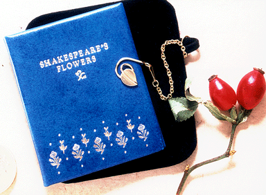 In designing and making this book I have combined the beauty of Shakespeare’s poetry with the charm of herbal woodcuts in a binding intended to reflect the precious nature of both. The book is bound by hand in a blue calf leather, decorated with a hand gilt design of flowers and leaves. Each impression is made individually with heated brass engraved hand tools.