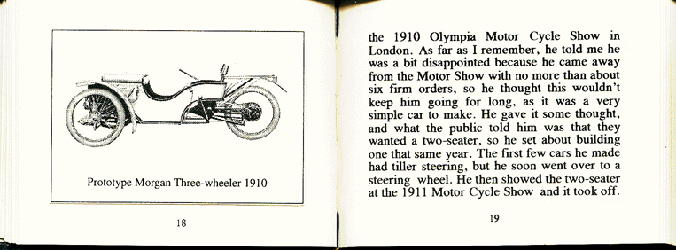 This is a unique story about a much-loved car. The Morgan Motor Company was once one of the largest car-makers in Britain and has been owned and run by the Morgan family for three generations. The story of how it came about and managed to survive two World Wars, umpteen recessions and the rigors of modern red tape is contained in this book. The story was told to me by Peter Morgan, son of the founder.